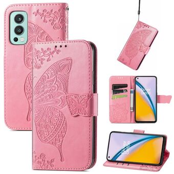 Butterfly Love Flowers Embossed Horizontal Flip Leather Case with Holder & Card Slots & Wallet & Lanyard For OnePlus Nord 2 5G(Pink)
