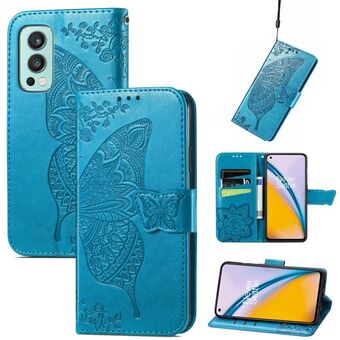 Butterfly Love Flowers Embossed Horizontal Flip Leather Case with Holder & Card Slots & Wallet & Lanyard For OnePlus Nord 2 5G(Blue)