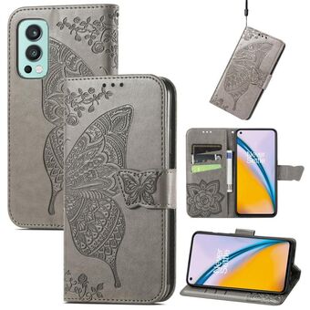 Butterfly Love Flowers Embossed Horizontal Flip Leather Case with Holder & Card Slots & Wallet & Lanyard For OnePlus Nord 2 5G(Gray)