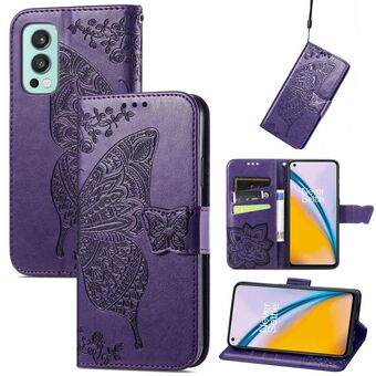Butterfly Love Flowers Embossed Horizontal Flip Leather Case with Holder & Card Slots & Wallet & Lanyard For OnePlus Nord 2 5G(Dark Purple)