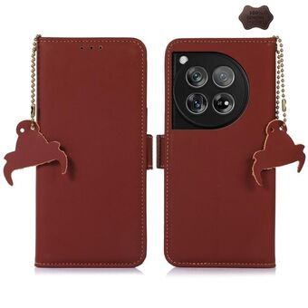 For OnePlus 12 Genuine Leather Magnetic RFID Leather Phone Case(Coffee)