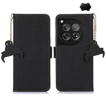 For OnePlus 12 Genuine Leather Magnetic RFID Leather Phone Case(Black)