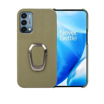 For OnePlus Nord N200 5G Ring Holder Litchi Texture Genuine Leather Phone Case(Green)