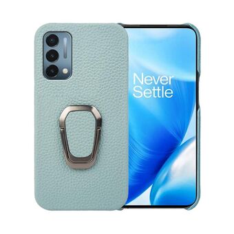 For OnePlus Nord N200 5G Ring Holder Litchi Texture Genuine Leather Phone Case(Cyan)