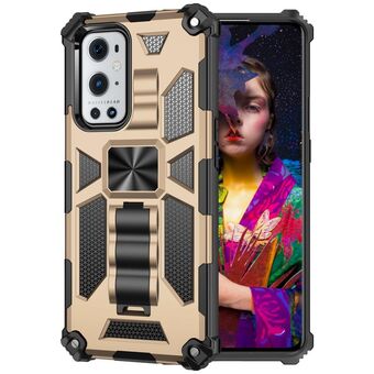 For OnePlus 9 Shockproof TPU + PC Magnetic Protective Case with Holder(Gold)