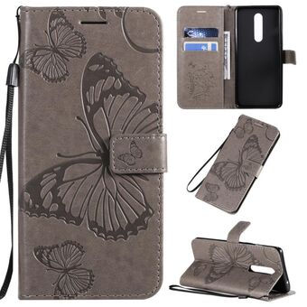 For OnePlus 8 3D Butterflies Embossing Pattern Horizontal Flip Leather Case with Holder & Card Slot & Wallet & Lanyard(Grey)