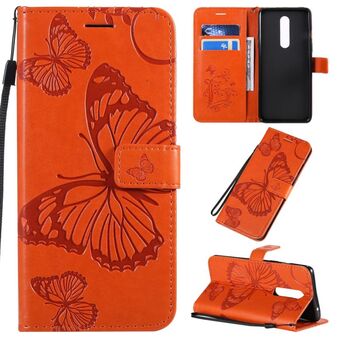 For OnePlus 8 3D Butterflies Embossing Pattern Horizontal Flip Leather Case with Holder & Card Slot & Wallet & Lanyard(Orange)