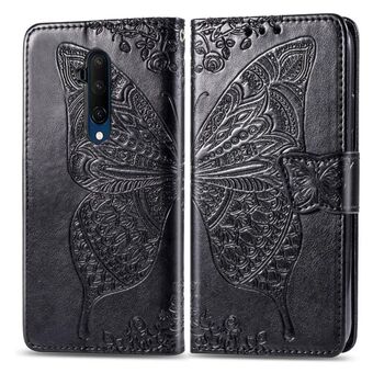 For One Plus 7T Pro Butterfly Love Flower Embossed Horizontal Flip Leather Case with Bracket Lanyard Card Slot Wallet(Black)