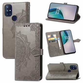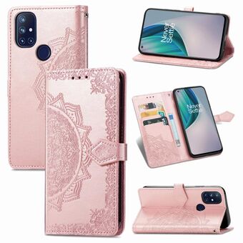 Θήκη OnePlus Nord N100 Mandala Flower ανάγλυφη οριζόντια δερμάτινη με βάση & τρεις θήκες καρτών & πορτοφόλι & κορδόνι (Μαύρο)