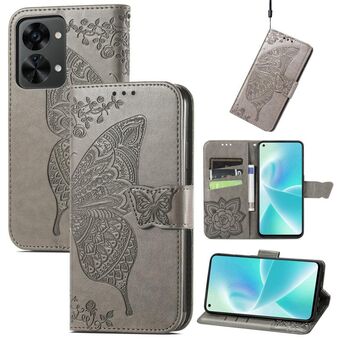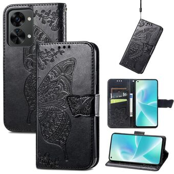 Θήκη τηλεφώνου OnePlus Nord 2T, δερμάτινη, οριζόντια, με ανάγλυφο σχέδιο πεταλούδας και λουλουδιών (Μαύρο)