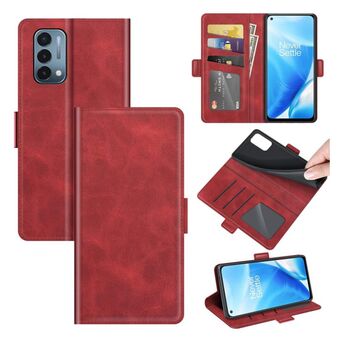 Θήκη προστασίας οριζόντιας αναδίπλωσης με υφή Litchi για OnePlus Nord 2 5G με βάση στήριξης & υποδοχές καρτών & πορτοφόλι (Κόκκινο)