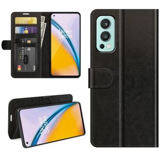 Θήκη δέρματος οριζόντιας αναδίπλωσης με μαγνητικό κούμπωμα διπλής όψης για OnePlus Nord N200 5G με βάση & υποδοχές καρτών & πορτοφόλι (Μαύρο)