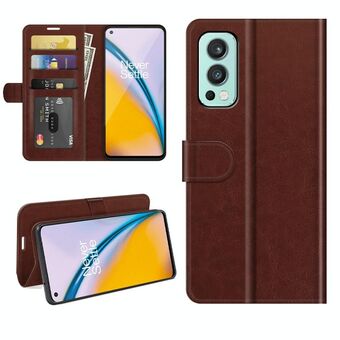 Θήκη προστασίας δέρματος με κάθετη αναδίπλωση για OnePlus Nord CE 5G R64 με υφή, με θήκες για κάρτες & κορνίζα φωτογραφιών (Κόκκινο)