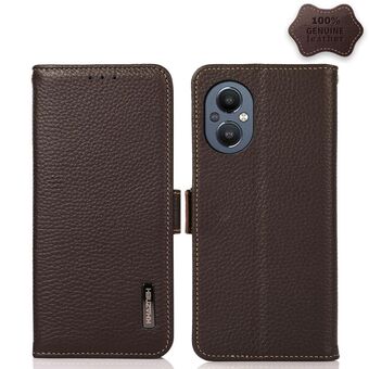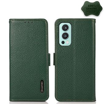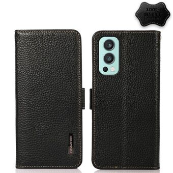Για OnePlus Nord 2 5G KHAZNEH Μαγνητική Θήκη Τηλεφώνου από Γνήσιο Δέρμα Litchi με Προστασία RFID (Μαύρο)