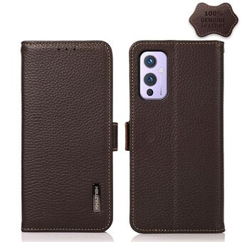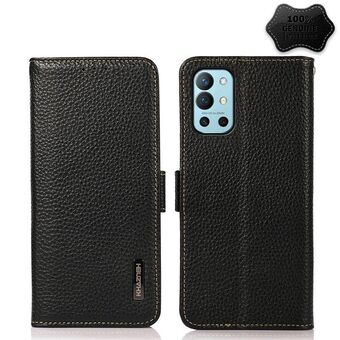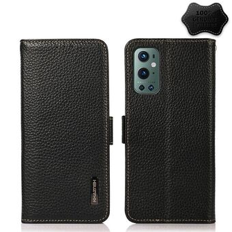 Θήκη τηλεφώνου OnePlus 9 KHAZNEH με μαγνητικό κλείσιμο, από γνήσιο δέρμα Litchi και προστασία RFID (Μαύρο)