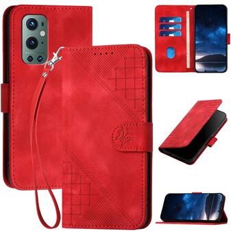 For OnePlus 9 Pro Grid Butterfly Embossed Pattern Flip Leather Phone Case with Lanyard(Red)