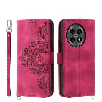 Για OnePlus 13R / Ace 5 / Ace 5 Pro Skin-feel λουλούδια ανάγλυφο πορτοφόλι δερμάτινη θήκη τηλεφώνου (κόκκινο κρασί)