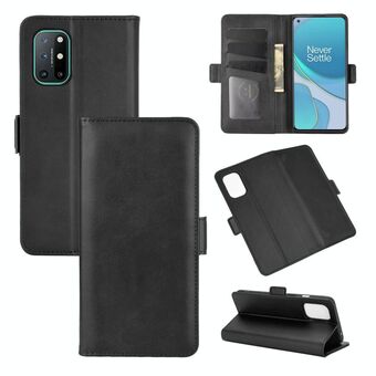 Για OnePlus 8T Διπλής όψης μαγνητική πόρπη οριζόντια Flip δερμάτινη θήκη με θήκη & υποδοχές καρτών & πορτοφόλι (μαύρο)