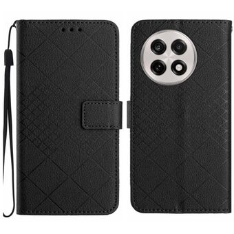 Για OnePlus 13 Rhombic Grid Υφή δέρμα τηλέφωνο υπόθεση (μαύρο)