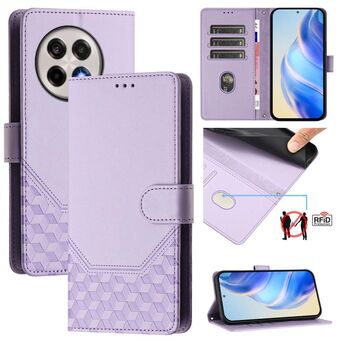 Για OnePlus 13R / Ace 5 Pro 5G Honeycomb ανάγλυφη RFID δερμάτινη θήκη τηλεφώνου (Violet)