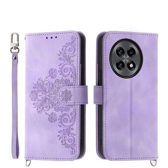 Για OnePlus 13 Skin Feel Sun Flower ανάγλυφη δερμάτινη θήκη τηλεφώνου με κορδόνι (μωβ)
