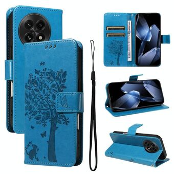 For OnePlus 13 Tree & Cat Embossed Pattern Flip Leather Phone Case(Blue)