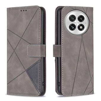 Για OnePlus 13 BF05 μαγνητική πόρπη Rhombus Υφή δερμάτινη θήκη τηλεφώνου (γκρι)
