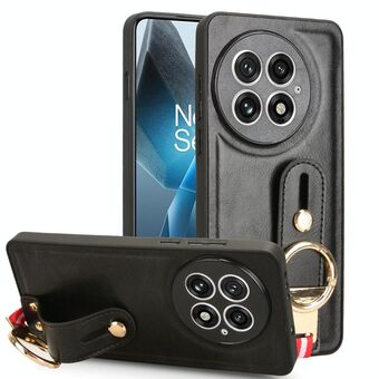 Για OnePlus 13 Wristband δέρμα πίσω τηλέφωνο υπόθεση (μαύρο)