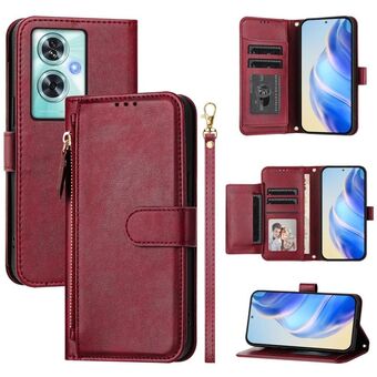 Για OnePlus Nord CE 2 5G Multi-Card Slots φερμουάρ πορτοφόλι δερμάτινη θήκη τηλεφώνου (σκούρο κόκκινο)
