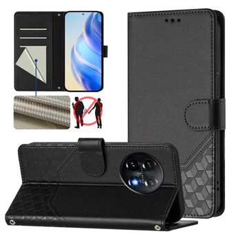 Για OnePlus Nord 3 / Ace 2V Honeycomb ανάγλυφη RFID δερμάτινη θήκη τηλεφώνου (μαύρο)