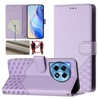 Για OnePlus 12 5G Global Honeycomb ανάγλυφη RFID δερμάτινη θήκη τηλεφώνου (Violet)