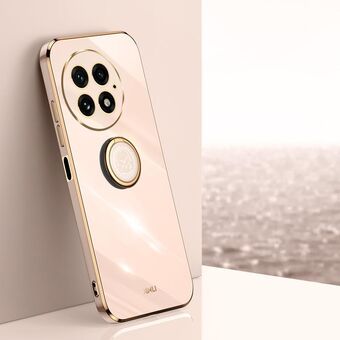 For OnePlus 13 XINLI Straight Edge 6D Electroplate TPU Phone Case with Ring Holder(Pink) (XINLI)