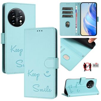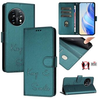 Για OnePlus 11 Χαμόγελο ανάγλυφο RFID δερμάτινη θήκη τηλεφώνου (πράσινο χρώμα)