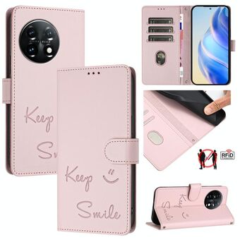Για OnePlus 11 Χαμόγελο ανάγλυφο RFID δερμάτινη θήκη τηλεφώνου (ροζ)