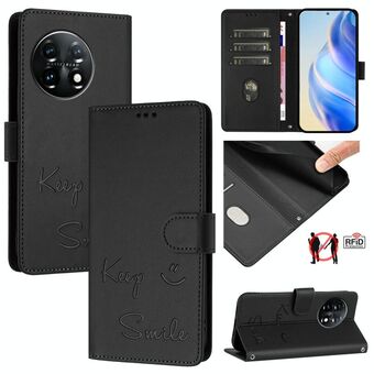 Για OnePlus 11 Χαμόγελο ανάγλυφο RFID δερμάτινη θήκη τηλεφώνου (Μαύρο)