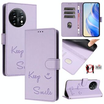 Για OnePlus 11 Χαμόγελο ανάγλυφο RFID δερμάτινη θήκη τηλεφώνου (Light Purple)