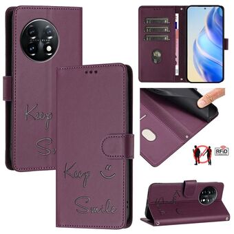 Για OnePlus 11 Χαμόγελο ανάγλυφο RFID δερμάτινη θήκη τηλεφώνου (Violet)