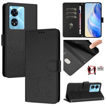 Για OnePlus Nord 2T Χαμόγελο ανάγλυφο RFID δερμάτινη θήκη τηλεφώνου (Μαύρο)