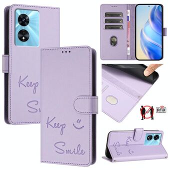Για OnePlus Nord 2T Χαμόγελο ανάγλυφο RFID υπόθεση τηλεφώνου δέρμα (Violet)