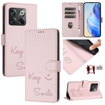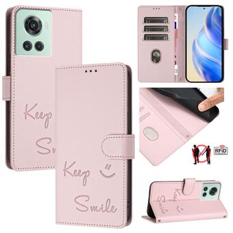 Για OnePlus 10R / Ace χαμόγελο ανάγλυφο RFID δερμάτινη θήκη τηλεφώνου (ροζ)