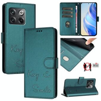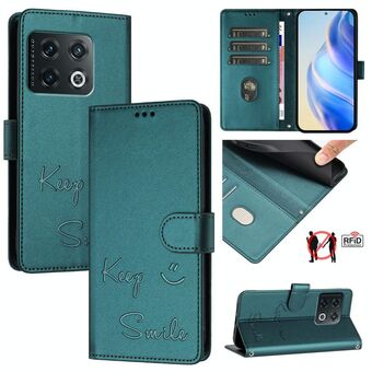 Για OnePlus 10R / Ace χαμόγελο ανάγλυφο RFID δερμάτινη θήκη τηλεφώνου (πράσινο χρώμα)