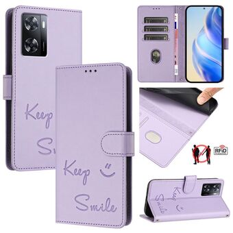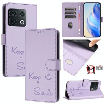 Για OnePlus 10R / Ace Χαμόγελο ανάγλυφο RFID δερμάτινη θήκη τηλεφώνου (Light Purple)