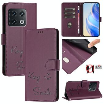 Για OnePlus 10 Pro Χαμόγελο ανάγλυφο RFID δερμάτινη θήκη τηλεφώνου (Violet)
