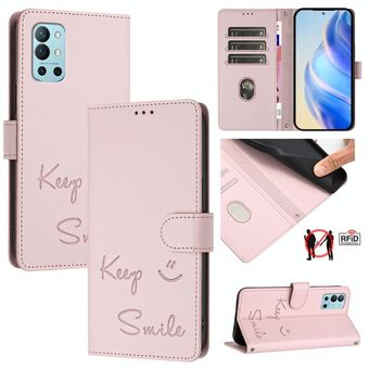 Για OnePlus 9R / 8T Χαμόγελο ανάγλυφο RFID δερμάτινη θήκη τηλεφώνου (ροζ)