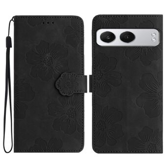 Για OnePlus Nord 4 λουλούδι ανάγλυφο μοτίβο δερμάτινη θήκη τηλεφώνου (μαύρο)