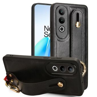 Για OnePlus Nord CE4 Wristband δέρμα πίσω τηλέφωνο υπόθεση (μαύρο)