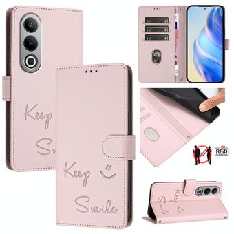 Για OnePlus Nord CE4 Χαμόγελο ανάγλυφο RFID δερμάτινη θήκη τηλεφώνου (ροζ)