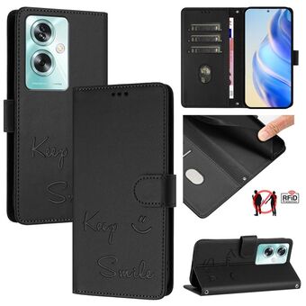 Για OnePlus Nord CE3 Χαμόγελο ανάγλυφο RFID δερμάτινη θήκη τηλεφώνου (Μαύρο)