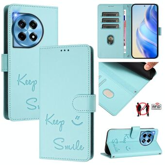 Για OnePlus 12R 5G Παγκόσμια Smile ανάγλυφο RFID δερμάτινη θήκη τηλεφώνου (Peacock Green)
