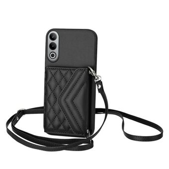Για OnePlus Nord CE4 / OPPO K12 5G Rhombic υφή κάρτα τσάντα RFID υπόθεση τηλεφώνου με μακρύ κορδόνι (Μαύρο)